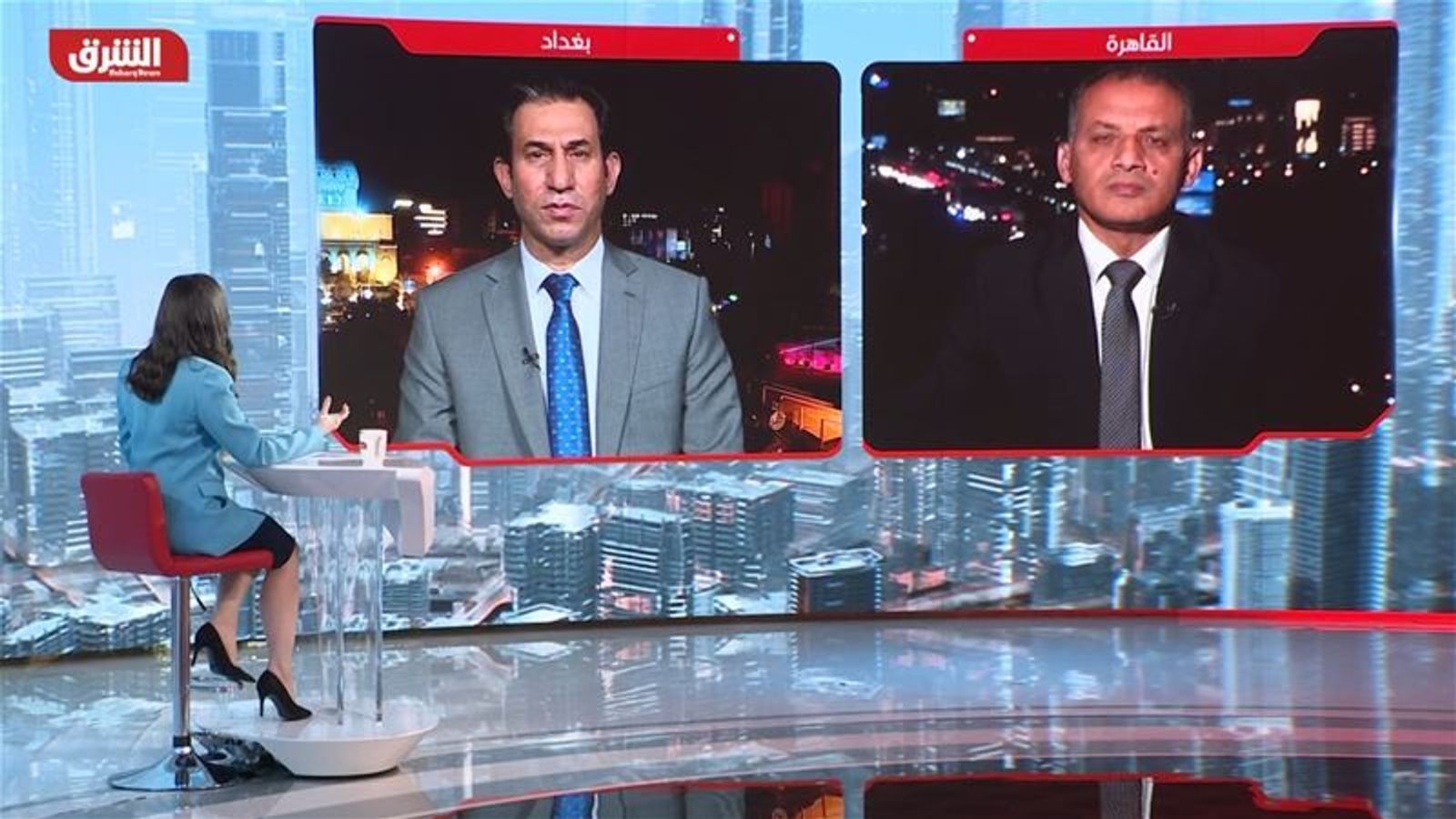 الدكتور محمد فايز فرحات / مدير مركز الأهرام للدراسات السياسية والاستراتيجية: الصين تسعى لتقديم نفسها كشريك يمكن الاعتماد عليه وبديل استراتيجي للولايات المتحدة لكل الدول التي تتوتر علاقاتها مع واشنطن. *العراق يرى في مبادرة "الحزام والطريق" بديلاً مهماً لتسريع عملية التنمية. الدكتور إحسان الشمري / رئيس مركز التفكير السياسي العراقي: الصين تندفع لملء الفراغ الذي خلفته أميركا في العراق بتحفيز من إيران. *الصين تحاول أن لا تعيد تركيب صورة الولايات المتحدة في الداخل العراقي.