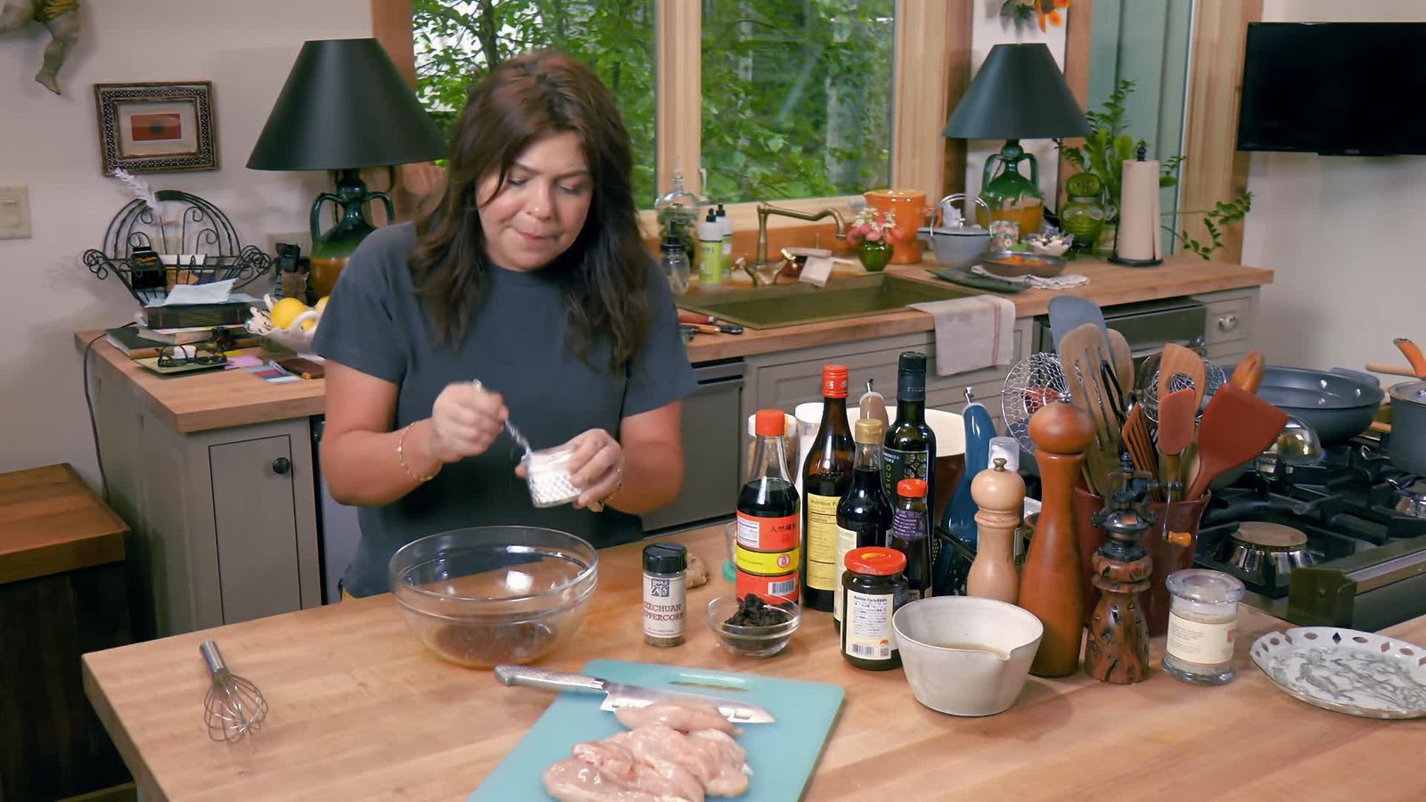 تستعيد رايتشل راي نكهة المأكولات الجاهزة بأسلوب صحي، إذ تطهو بنفسها طبق الدجاج مع الفاصوليا الخضراء في صلصة الفاصوليا السوداء. من خلال الطهي المنزلي، تتحكم راي بدقة في كمية الملح والدهون وتختار المكونات بعناية لضمان جودة عالية ومذاق متوازن يجمع بين الأصالة والطابع العصري، مقدمة نموذجًا للطهي الواعي والصحي.