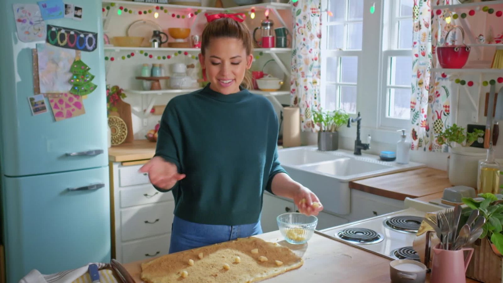 في أجواء عيد الميلاد، تقدم مولي يِه مائدة متكاملة تجمع بين الأطباق المالحة والحلويات الاحتفالية، حيث تُحضّر سمكة كاملة كطبق رئيسي إلى جانب ماك آند تشيز بالبروكلي، بينما تتألق الحلويات مع الكعك الفاخر وبيوت خبز الزنجبيل، إضافة إلى لفائف شتولن الدوارة وبسكويت الزنجبيل اللطيف، لتصنع يومًا احتفاليًا بطابع منزلي دافئ ومميز.