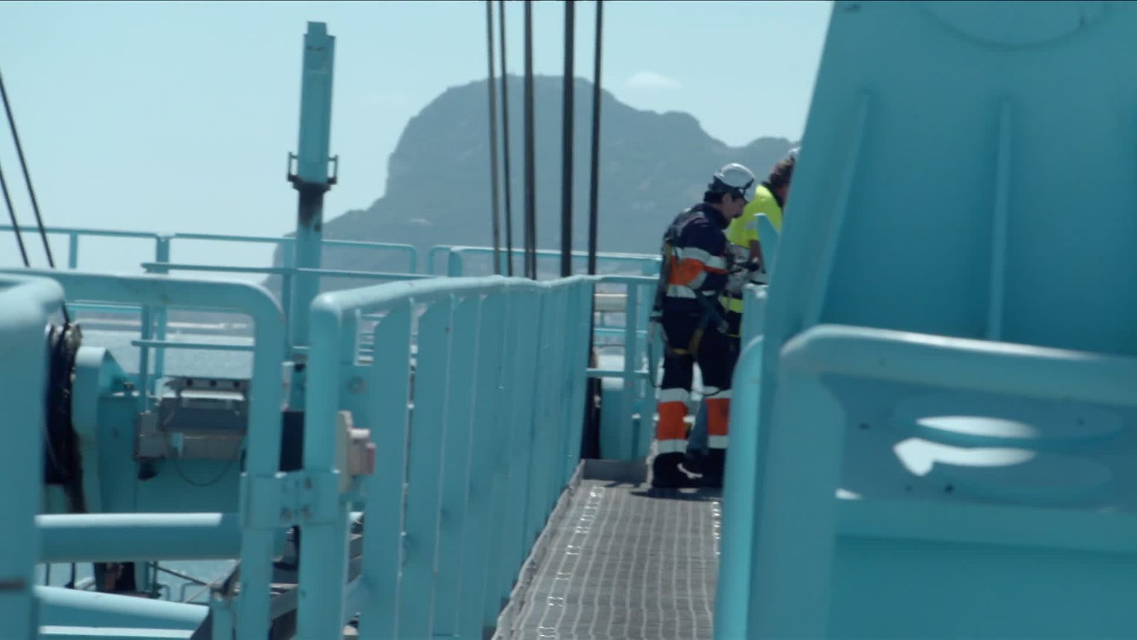 تستكشف الحلقة الجانب الأقل وضوحاً في الموانئ: **الصيانة الوقائية والطارئة**. يواجه قبطان زورق السحب في ساغونتو خطر الاصطدام بالمقدمة المنتفخة لسفينة شحن ضخمة أثناء مناورة في طقس سيئ. في الجزيرة الخضراء، تُسلط الأضواء على فريق الصيانة الذي يخاطر بحياته على ارتفاع 56 متراً لإصلاح رافعة عملاقة
