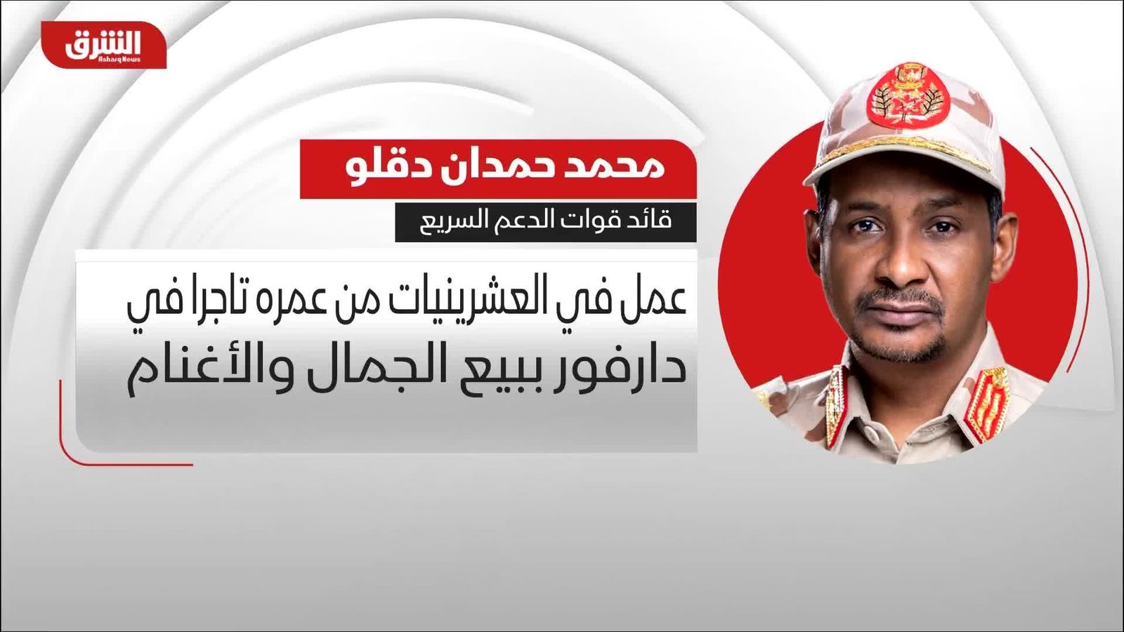 ولد محمد حمدان دقلو الشهير باسم "حميدتي"، وهو قائد قوات الدعم السريع في قبيلة الرزيقات بمنطقة حدودية بين تشاد والسودان عام 1975.. فما أبرز المعلومات المتعلقة به؟