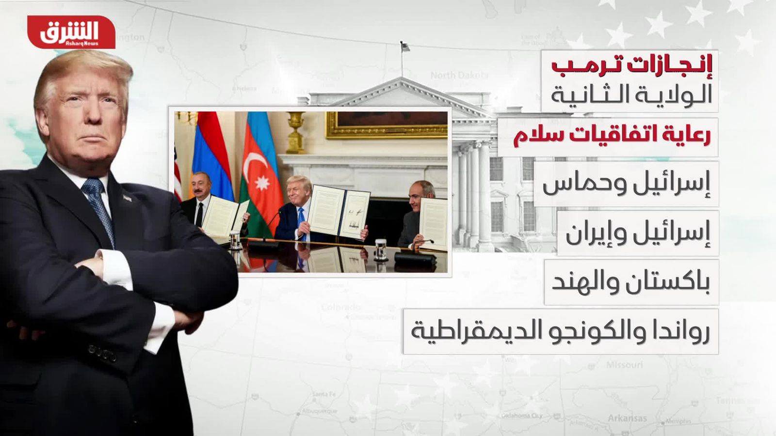 اتخذ الرئيس الأميركي دونالد ترمب سلسلة قرارات تنفيذية واسعة في ولايته الثانية، من بينها رعاية اتفاق لوقف حرب غزة بمشاركة مصر وقطر وتركيا، والترويج لتوقيع عدة اتفاقيات سلام دولية، وفرض رسوم جمركية عالمية. كما توصل إلى تسوية تجارية مع الصين، وصعّد الضغوط على فنزويلا، وأصدر قرارات تتعلق بوزارة الدفاع والعقوبات على سوريا.