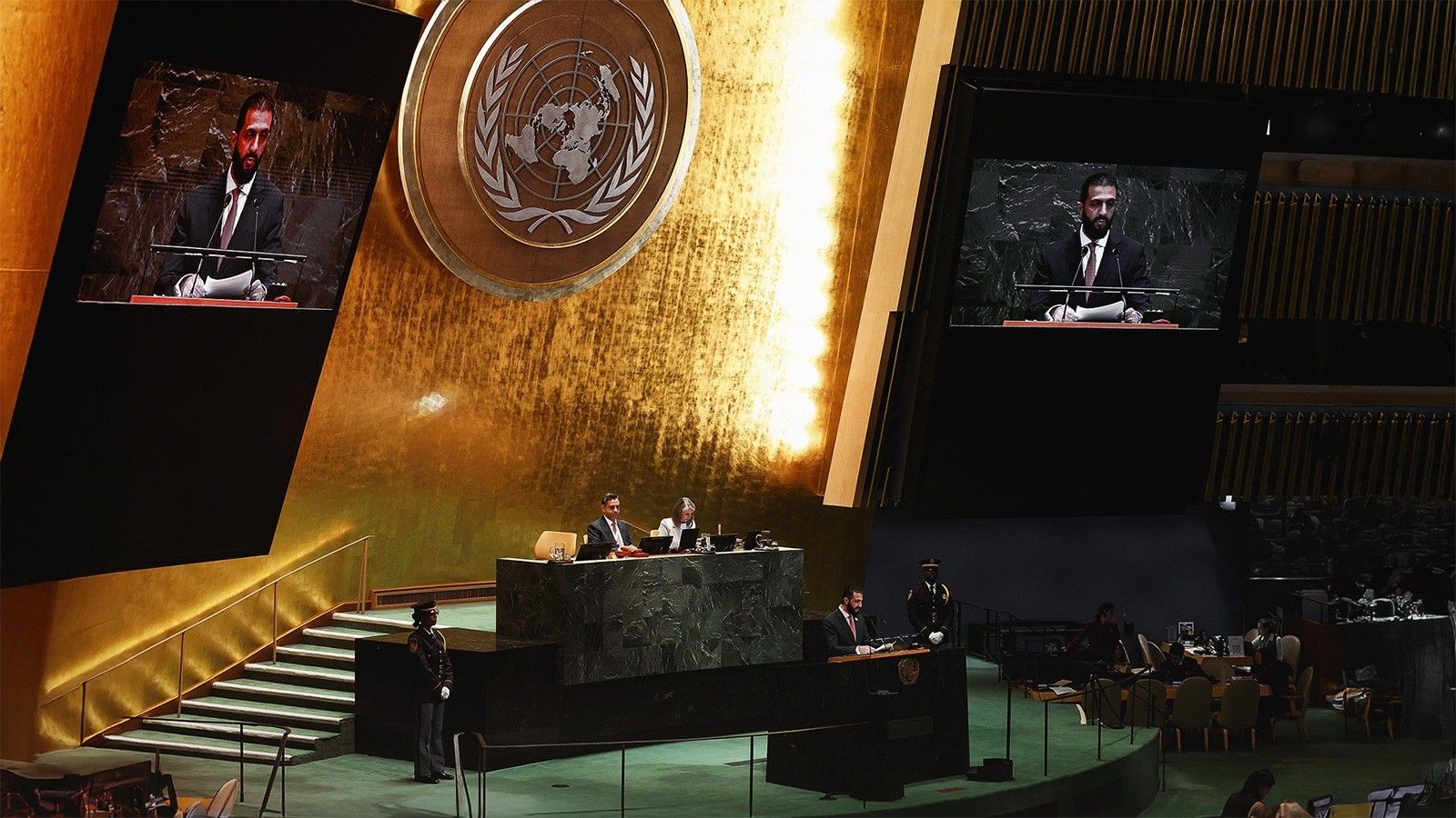 بعد ستة عقود من الغياب، عاد الرئيس السوري أحمد الشرع إلى منبر الأمم المتحدة مطالبًا برفع العقوبات ومؤكدًا التزام بلاده باتفاقيات فض الاشتباك مع إسرائيل. فيما مثل الاعتراف بفلسطين من حلفاء واشنطن اختبارًا حقيقيًا لسياسة ترمب في الشرق الأوسط، الذي سارع إلى عرض خطة لليوم التالي للحرب بالتشاور مع قادة عرب وإسلاميين.