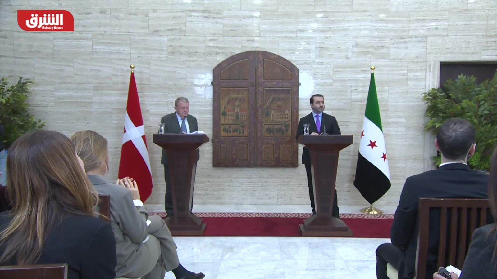 استقبل وزير الخارجية السوري نظيره الدنماركي لارس لوكه راسموسن في دمشق ضمن مؤتمر صحفي، حيث ناقشا دعم سوريا الجديدة وتعافي الدولة، وتعزيز الاستثمار وفرص الأعمال، وعودة اللاجئين من الدانمارك، بما يرسخ التعاون الثنائي ويقوي الشراكة بين البلدين.