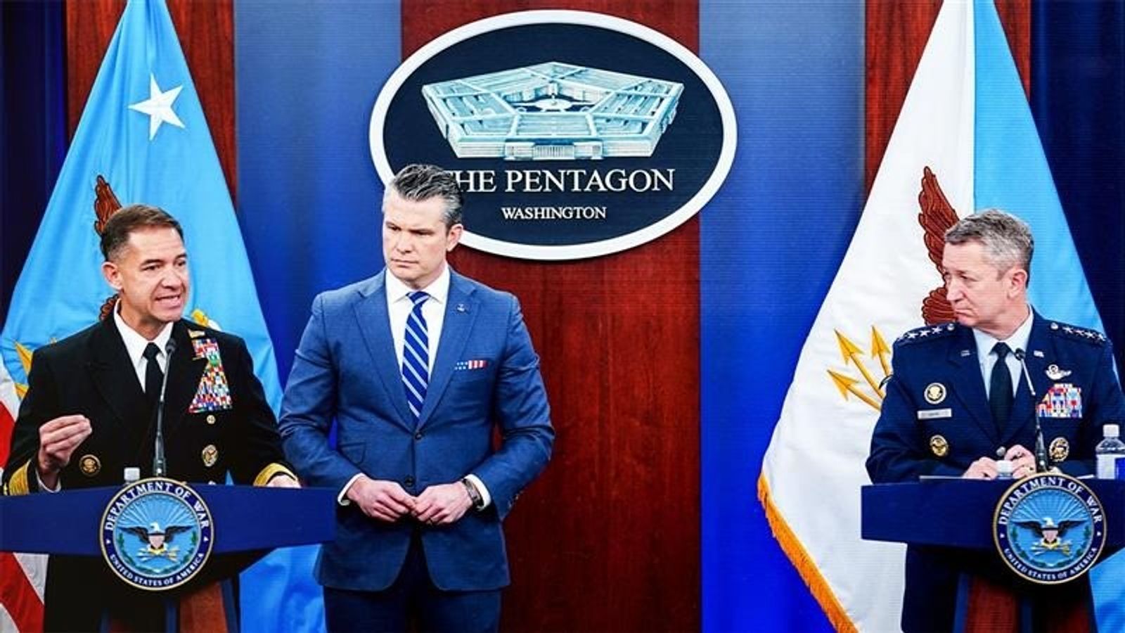 قال وزير الحرب الأميركي بيت هيجسيث إن الحصار على إيران بدأ يؤتي ثماره، لافتًا إلى أن طهران تسعى لإعادة تشغيل منصات إطلاق صواريخ تضررت بالقصف. وأضاف أن إيران لا تمتلك أسطولًا بحريًا يتيح لها السيطرة على مضيق هرمز، معتبرًا أن التهديد بإطلاق النار على السفن لا يعكس سيطرة بحرية حقيقية بل يندرج ضمن أعمال القرصنة.فيما أوضح رئيس الأركان دان كين أن القوات الأميركية في اتم الجاهزية لاستئناف العمليات القتالية.